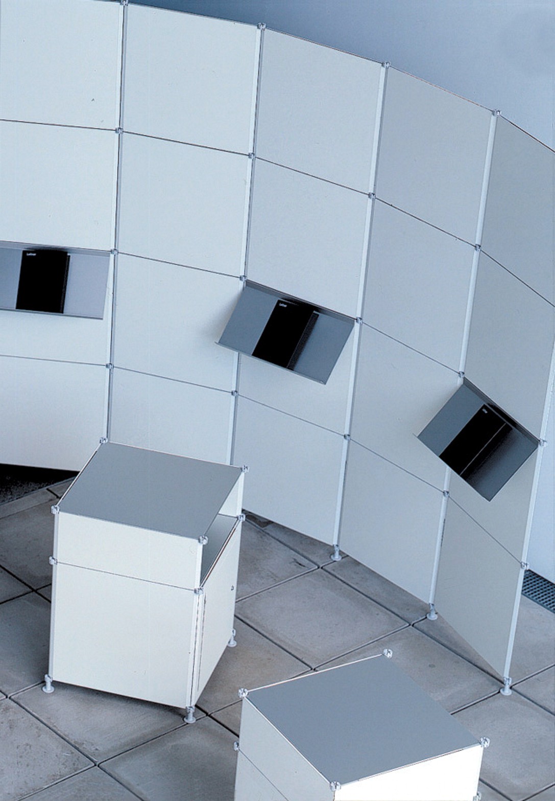 Leitner 4 comes as a kit of 20 boards with accessories including lighting, contained within a metallic or wooden crate. In fact, with the addition of several panel types, ceiling trellis and curved elements, L 4 becomes Leitner 9.